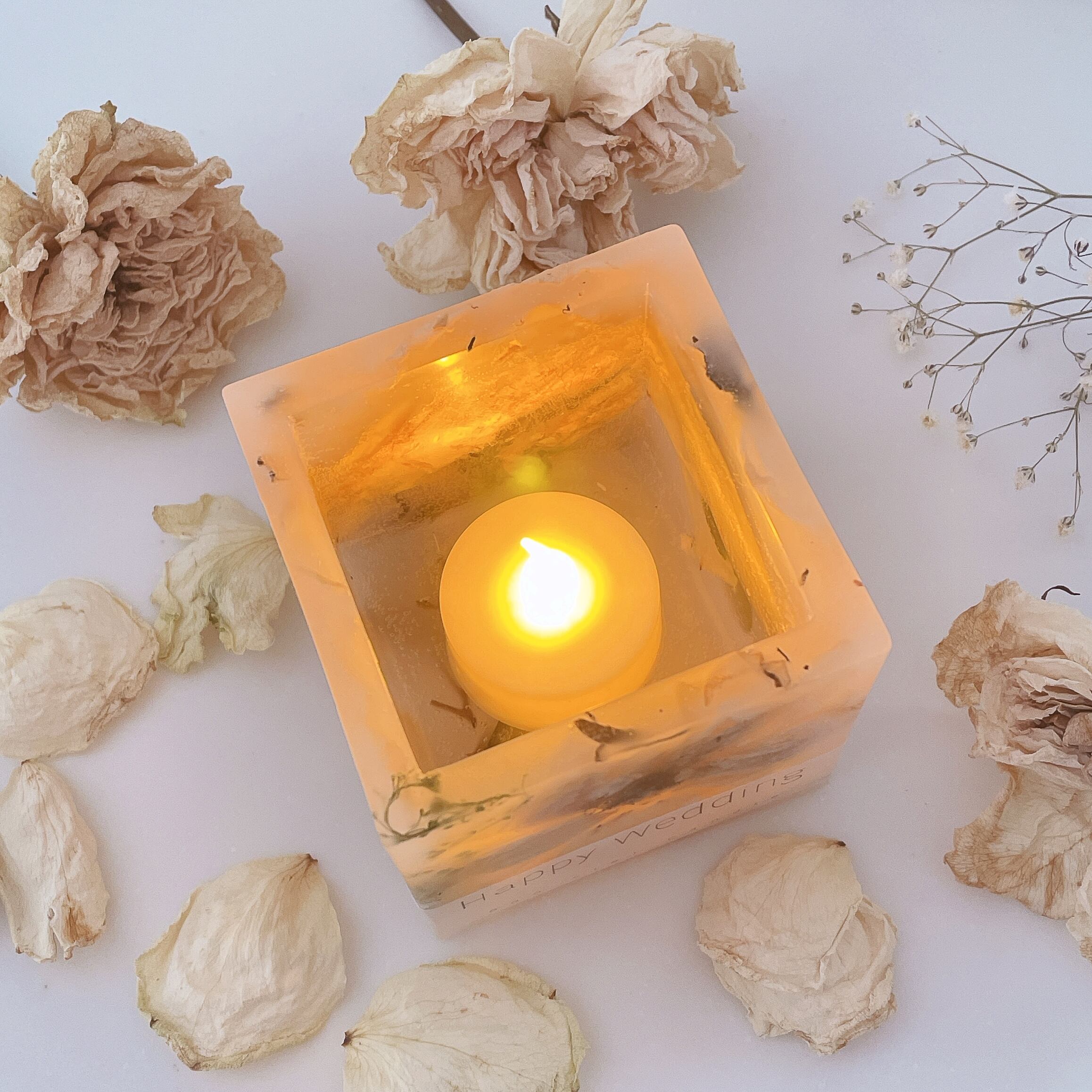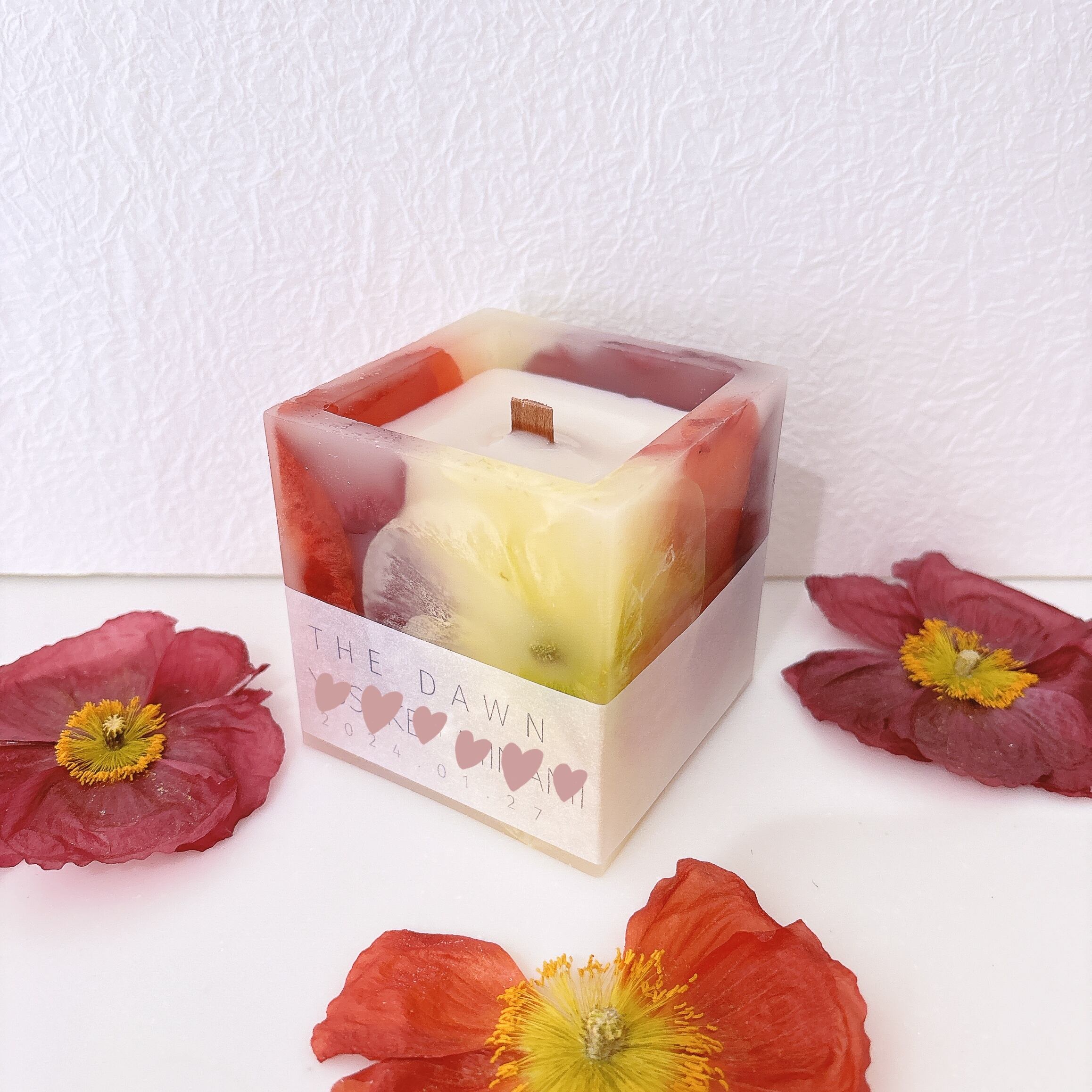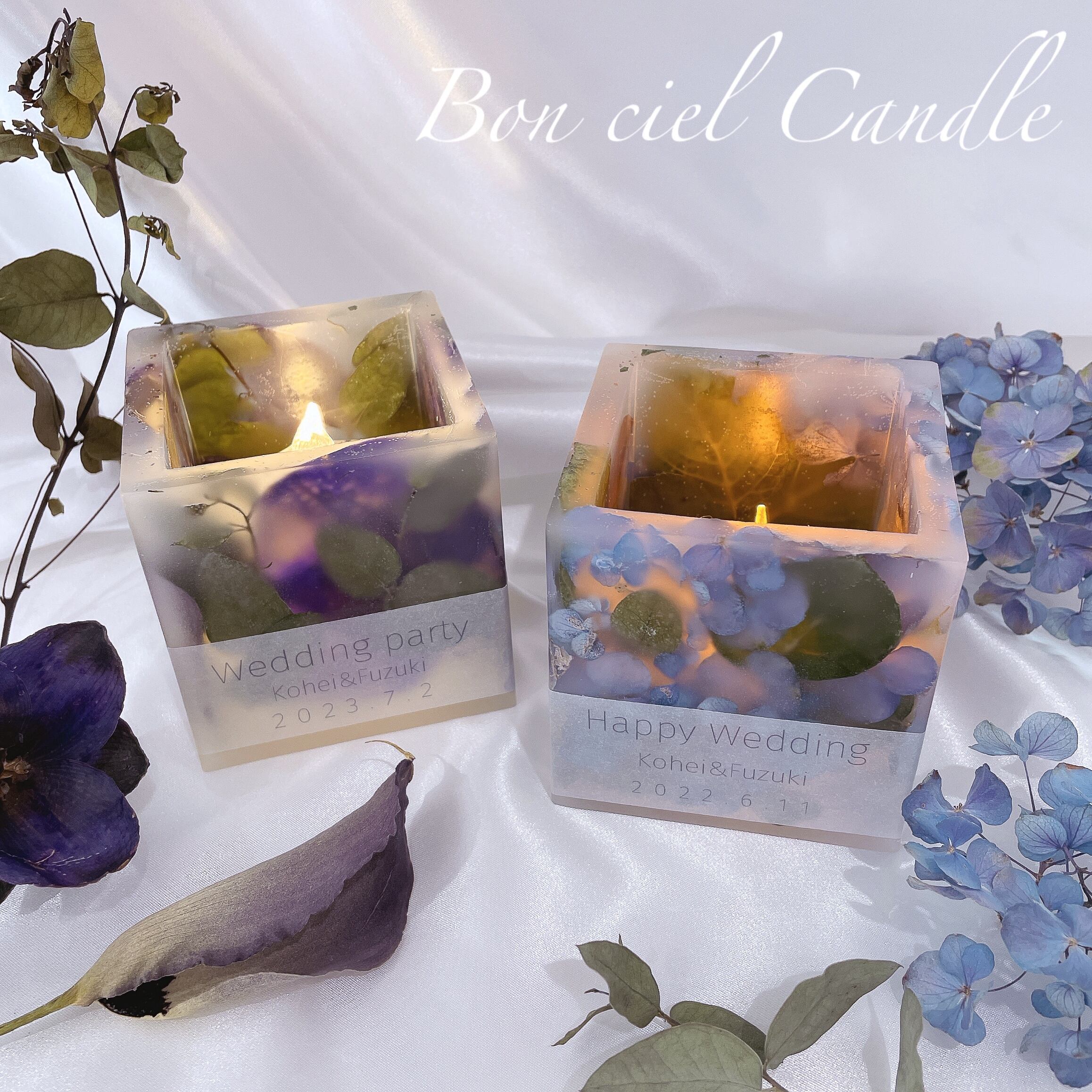 【No.234】アフターブーケキャンドル スクエア型ランタン ウエディング オーダーキャンドル ボタニカルキャンドル